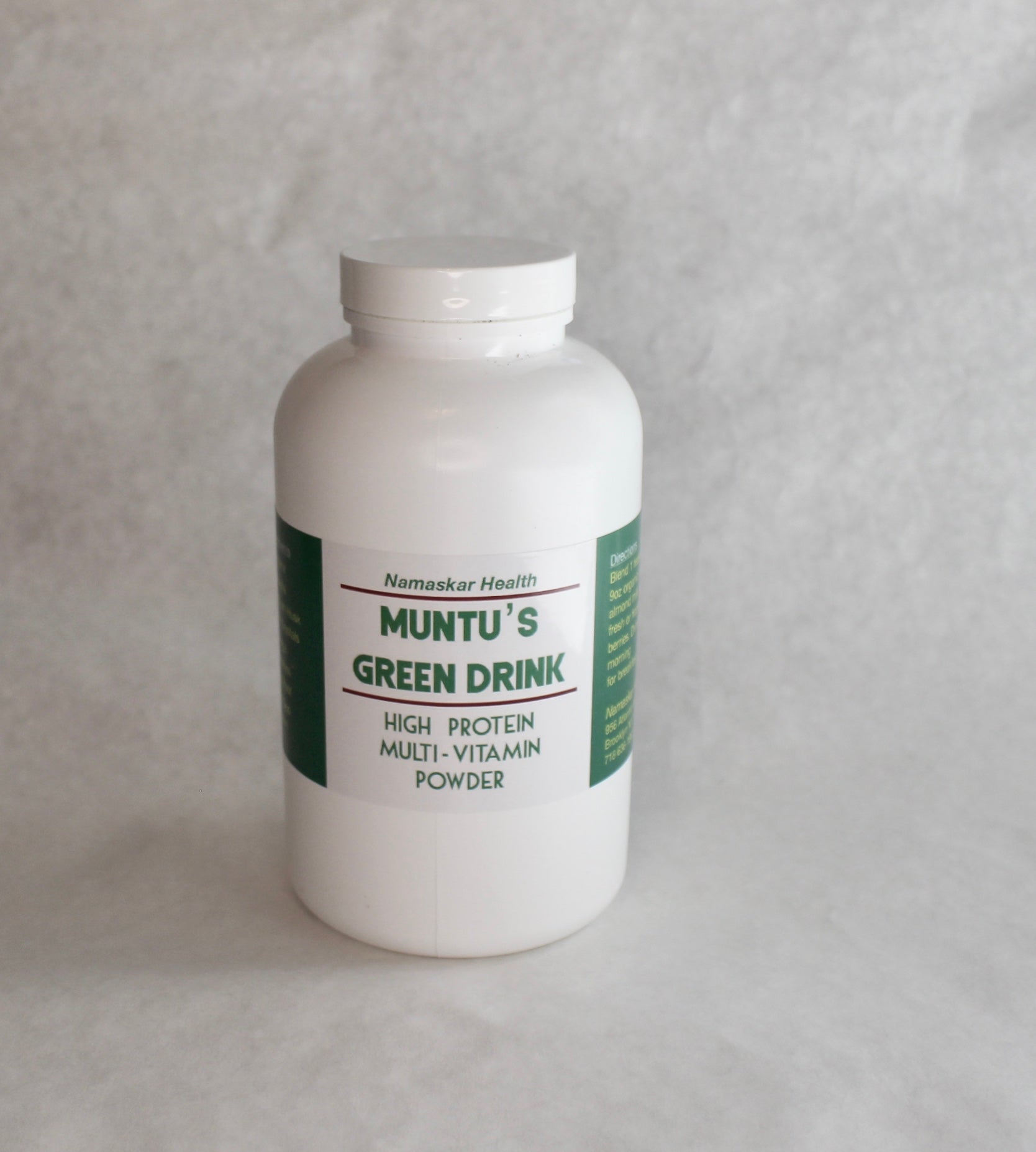 Muntu's Green Drink is a nutrient rich, high protein multi-vitamin in powdered form. Mix with your favorite juice to make a delicious and potent energy drink. Too busy to get your daily intake of fruits and vegetables? Muntu's Green Drink taken 3 times a day can provide you with a full day's supply of the nutrients you need to keep your body functioning at full capacity.